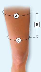 NOTE: Additional incremental circumference measurements may be needed for very long knee supports.